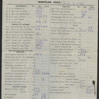 A "regular call" sheet dated February 3, 1883, for the Washington Stock Exchange in Washington, D.C. Hand-written values are filled in for numerous stocks and bonds. This item is part of the papers of the Lyman Family of Forest Grove, Oregon. The family included several members involved in Congregational Church ministry and education in Oregon.