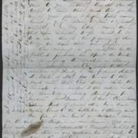 Kalaazoo The 23, 1830<br/><br/>Dear Bro + Sister<br/><br/>I. hardly know what to write as Caroline has filled nearly all the Sheet with news and observations and to you nothing that I can say would be news while much that you can say of your place + people habits [?] [?][?] would be very new + exceedingly interesting. Very likely many things that more interesting to you would be so to us now thought the frequently of them to you has made these [?] [prepice? pressive?]<br/><br/>Our Congress as you [?] see by this publich journals has spent the Winter in [discussing?] the question of Slavery The admission of California + the abolition of Slavery in the federal district Mr Webster of Mass has turned to the Mind with Genl Cap And while the [Elements?] are moved + all nature woohed by Slaveholding many Slaved [from?] [?] Freedom. Mr Seward + P. Hall Charles [?] [Goddings?] [?] of several others here dealt mortal blows to the institution + Slavery must soon fall in our land or Revolution occur on the judgement of Repenance [more?] [decisions?] efforts are being made than ever. Massachusetts + Vermont prohibit the sale of it. Im on State no good Conclusion has been made. But the younger State of Wisconsin has made it requisite for the dealers to give bonds to pay all damage that the sale + use of their Liquor may occasion. The general [?] of good is retrograde and while sectarianism exists it will continue to decline “A House divided against itself cannot stand”. No [?] organization that makes enemies of its allies + friends by Greed can stand.<br/><br/>I suppose that I have [?] but little that will [?] you interest + as no mention or notice has been given me in any letter I hardly hope to interest you much But hoping that you may have health + prosperity + speedily [?] turn home for “why should you go abroad while so much business be done at home” – Your Brother