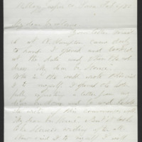 Kellog Jasper Co. [?] Feb 3/80<br/><br/>My dear [?] Horace. <br/><br/>Your letter mailed at N. Hampton came[?]<br/><br/>Hand. I opened and looked at the date and then the address. My dear [?] Horace. Who in the world wrote this said I to myself. I opened the letter [?] expecting a letter from my dear [?] and [?] and [?] “My dear [?] Horace.” But it looks like Horace is writing [?] all. Now said I to myself I will see whose name is [?]. When lo and behold it is [?] [?] by H. Lyman.<br/><br/>I need not [?] this letter farther [?]. But [?] in a state of rather absent mindedness you had in [?] [?] my name while [?] me I wrote now [?] for the purpose of asking your farther [?], when we may expect you here and how long we may [?] for you to remain with us. This I do in part for the purpose of knowing about arrangements for your [?] lectures at [?] and Yimmell. I will ascertain how the idea strikes the two brothers [?] husband at [?] and [frisbie?] at Ben [?]. And of course I should [?] to know nearly then you may be expected to give your [?] in case there should be a desire for them in those places.<br/><br/>We are in[?] usual health, the weather here is colder more than it was in January. [?] We have not had snow enough to make my delaying as yet and the month of Jan. May the Lord bless you where ever you go and help you much in your world. <br/><br/>We shall rejoice to welcome you here whenever you feel disposed to arrange to come along and shall desire you to remain as long as you feel best on account of your return [?] <br/><br/>Love you as well