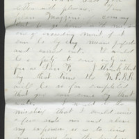 Have read your letters with pleasure. Your plan [?] of coming East to go home with me is one of exceeding merit if it can be by any means [?] and carried out. It would be a pity to come only as far as San F. I think that by that time the U.P.R.R will be so far completed that you can come by that route. I would to the mischief that I could ruin a few [?] own and above my expenses, so as to [?] your [?] for the purpose. I honestly think that [?] to visit, travelling East, would be the best use you could put your money to. What else would you want to do with it? You would have just as good a chance to make more when you should have returned, if you needed to; and you wouldn't need to anyhow. I will get some snug little place like W. Salmon, a Clatsup, a Canby, or Olympia to labor, and I shall have to have you to lead the singing. So you see you could come in time to be here when I graduate, then we could head out East and see the relatives. During the summer - that is '82 - I might get a job of filling a vacant pulpit, or get a job of milking cows, so as that my expenses would be defrayed for doing a little travelling with you, much as going to Boston and New York, to Washington, Phil, and other noted places. Then we could come back by way of the lakes, stay a season at Chicago, to see Mr. G[?] and Co; go on to Iowa, then put out N.W. for the headwaters of the Columbia, and [?] the gates of the mountains to loved Oregon. It seems as if that might be practicable. I made if we could [?] interest cousins Sarah and Henry in taking a little trip to Oregon with us. It might be sort of jolly if we could. My land, you know, will be worth a good deal before long and on the strength of that we would be [?] in a little more extravagance. Beautiful trip for thee and me. We can cherish this plan, and it may turn out well. I certainly do wish that Sarah could be strong enough to come. But I know it would almost [?] her up, if not quite [?] do so. Ever in the [?] sleeping curse, I doubt if she could sleep much, and on the emigrant can, sleepy head as I am, about 6 hour per night I [?] sleep was all that I could get, to save me. You would have no trouble in San F. because you, a [?], or both could write to the Tennys, who could meet you at the steamer if you went by S.F. And of course there would be no trouble at P. if you started from there by rail [?].