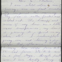 Nov. 6th, I believe,<br/><br/>I am still slowly improving, I am in fact considerably improved this morning. My face is rather peaked and washed out. The bumps and veins of my brow are a little more conspicuous, my beard is growing to a point on my chin, etc. I contemplate going over and hearing a few classes this afternoon. I think I may hear classes from 11 to 12 and from 2 ½ t 4 now in a few days, though now I am ardly stong enough to make two trips per day. The fine weather is at an end, for a spell at least. It has been foggy and rainy for the two past days, and is still cloudy. W. does not like the place here very well, has not been feeling so well for a few days, and as he would rather like to go on next year at the Grove he thinks he will go back soon. Captain Grimm is here and out of a job and perhaps, or rather very likely, would take a place in the institution here. The captain and I might [?] the institution for equal shares and so W. and J. go home as soon as the latter is able. It might be a little lonesome for me to stay here all by my little self this winter, but no doubt I should stand it well enough, especially if you kept up a fusillade of letters W. will surely do this if he can get the extra [$100?], and I think likely he had better anyhow. It is too confining for him to teach 6 hours a day it wears on him a good deal, and with the malaria and bugs of this region, he may be worn down very considerably. At the lowest calculation I would clear about $320 for the next two terms, and I might run the school the last term by myself and make $100 [or?] more; I mean by the Grimm arrangement. W. going home would relieve father entirely of school work, leaving him time for reading and writing and working in the [school?] and garden, and recuperating. I fear very much to have him go on with school work for a good long time. 20 years of almost constant drudgery (60 percent of his work has of necessity been drudgery) is enough to wear a man down considerably. So Father take pity on yourself and on Willie and let the boy go home and take the place while you give yourself to the work of [resting?]. You might do preaching in some of the districts around, if you could not restrain your [?] to do good. I do not think Sarah will be very strong for some time, and it would be better for her to go home. She could not take charge of the primary [?] for a good while, a month or more, and I fail to see how we are going to keep it up during the interim. She will hardly be well enough to do homework for several weeks needing care herself for a couple of weeks [?]. If she would be content to go, she had better. You, [M?], might [?] dark suggestions in your letters, and I will do the same by word of mouth. She cannot carry on her friends much longer. [We?] have read [?][?][?] folks out already. If there be no primary [?], she will have no work to do in the school, and if she kept house for me, and we pay $20 per month [out?], the [people?] would be left-handed, if she stays and [?], of course it would not pay. But this line of reasoning need not be presented to her at first as it might discourage her. J. and W. had [?] go home <br/><br/>I enclose a letter of Uncle Williams [?] W. opened<br/><br/>*in second-page margin* W. has had several headaches