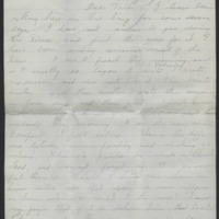 Riceville July 3, 1881 <br/><br/>Dear Folks, <br/><br/>I have been ratting here in this bury for some seven days. I have not written to you during this time and feel for the more for it. I have been writing memories most of the time, I must preach this morning as I usually do, began it about Wednesday and I wrote the sermon and did not like it. Then [?] another, and then another wrote thee sermon in four days and then quit. I don’t know how many I thought of period. This was a good audience this morning to see the “new morn” impact. I felt calm. There is a difference between sermon preaching and speaking [arations]. When one preaches he stands in Christ’s stead, and cannot forget it. It is [?] thought. Shall I bring more shame on him who was spit upon or more suffering on him who was nailed to its cross? [?] my prayers that if I do dishonor him he will strike me dead. By dying one might glorify him if not by preaching. It is a great thing to die well. I preached as vigorously as I could but some how I did not think I did much. I was afraid that I did not inform the opportunity. It was a great opportunity. I have seldom felt more willed mind then when I classed. Some people said they liked it. I guess I shall stay here for a time. I was somewhat [?] last Sunday, I was preaching away [?] when I alarmed some girls [?]. So I turned by eyes [?] on them and preached at them for about five minutes when they quieted down and troubled no more. This is an effective instrument in the profession of the preacher to back people down and [?][?] them [?]. <br/><br/>Monday [?] it, there is something the matter of me, and I know what it is. I did not get any letter from home last week. I had not had it forwarded, and so must do without until it comes. I shall have it such now that I know I am to stay, I am going to stay here until [?]. You Mary, had better make your arrangements I said, to stay a little time at Kellogg and Chicago, and come to Oberlin about the 1st [?] or 4, if the same. We can arrange that. Now I wish to [?][?] you very deeply one thing. In travelling you must take care of yourself, it will be a hard trip any how, and you must take all possible precautions not to [?] do. This will be when you will be most likely to teach yourself in [?] of one kind and another, on the way; in good sleep, to sleep all you can, let nothing [?] with the [?] of your meals, or anything she, there are some things unpleasant [?] with life on the east, but you must not let them [?] with your health. If you should get a series of headaches by any carelessly, i got your [?][?], or otherwise disarrange your [?] uptown, I would greatly was you [?] of the trip, and [?] you for work when you [?] at Oberlin. Bear there things in mind, I should like to write them with a pen of fine on your brain, because they are so important, I have been through the will, and know, [?] not my [?]. Yea I ate to much watermelon one day. I think In a former letter I told all about what to get, how to put sheets around your bunks etc. You must come, I have not my mind bent on it. It will be good for you. I shall make about thirty [?] clear this summer, so I can [?] you some, more than I expected. The Sammon’s are an exceedingly interesting family. They talk too much, forever. He gave me an awful compliment on my sermon. He said “well that is the only sermon I ever heard that was completely [?]. You did [?] very bored and I thought I would all been many [?] to [?]. But when you began to bring up you[?], they said ‘well I must [?] to this’, and they could[?] go to sleep” [?] was frank enough to tell me not many days before that he was disappintd in me. I thought this too was probably sincere. Mrs Sammon’s said that I make my thought so clear the the [?] could be [?]. This I valued the more as I am always afraid of slipping into the [?] of the [?]. At least [?] all tell me that I so. There thing feed my verity pleasantly.<br/><br/>This is a short letter, but I will write again.