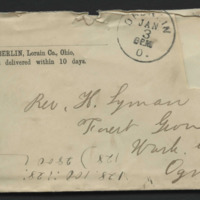 - Envelope from James Lyman to his brother, Reverend Lyman.