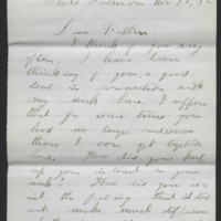 White salmon Nov 22 82 <br/><br/>Dear Father,<br/><br/>I think of you very often. I have been thinking of you a good deal in connections with my work here. I [?] think for some time now [suppose] think for some time you had no longer audiences thou I can get together here. Thou live your life if your interests is your work. Thou live you [?] the feelings that it [?][?] make much difference [unbetter] you lid your lack of your [?]? How did you prevent the [?] stupidity and in [?][?] of much of your audiences from [?] your [?] to make your remorse [?] us keen and bright and [?] as [?]. if a man know that much of his good [?] will not be noticed he feels a gradual relinquishing of lying to make good points. My audiences do [appreciate] form and [?]. But few of them make a good point. I keep up my interest by thinking that I am in some way to some extent [?] the [?] and [?] by getting a bold [?] ensure and rough I am [?] myself to get [?] if [?] kinds. If I can learn to interest such people as these I can surely interest those of higher cultures. I think it will work as I thought, with me and I suppose it is so will all, a quiet [?] of the strength of [?] I say depends upon the audiences. There is a [?] about our audiences that electrifies a speaker if I feel the lack of this I feel weak. A small [?] audience does not furnish much magnetism. So I learn to defend upon my own mind mere in this way I am able to be more self - [?] and [?] I do speak before a large audiences I feel this [?] much more. If a man gets into the habit of defending upon a large audiences, when he gives before a small one he will feel entirely spiritually. But if he learns to speak audiably before a small audience; before a large one he will double his forever. <br/><br/>I have been to the Dalles and will go to Hood River next Sunday a Friday [?]. <br/><br/>The Weather has been off and on for a month. It is on today. It is a close fit today. Clouds heave from mountain top to mountain top and the air is grey with rain. It tried hailing a little yesterday and snowing a little today. But was not [?] enough in this Gorge to allow much of that [?][?][?][?]. <br/><br/>Well, [?] write, <br/><br/>H.S Lyman