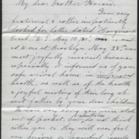 Your very fraternal and rather impatiently looked for letter dated “Hangman’s Creek. W. T. [Washington Territory] May 10/80,” re-mailed to me at Brooklyn May 28th, was most joyfully received; because especially it informed us of your safe arrival here in improved health, as well as of the health and joyful meeting of their long absent father by your dear children.