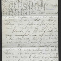 Union Falls N.Y. Nov. 1st/ 81<br/><br/>My Dear Uncle,<br/><br/>Your letter was indeed a great surprise to me; but upon reflection, I know that as strange as things have happened before, was for a man to write to his wife's niece.<br/><br/>Thanks for the kind interest you manifest in my welfare. We were sorry that you could not visit us, when you were east.<br/><br/>Willie also passed us by, when he was visiting his relatives. So it seemed much as if we were never to have any face-to-face acquaintance with my dear Aunt Mary's family; in each member of which, I could not feel otherwise, than deeply interested. Horace's visit was a very pleasant surprise to us. It is a <br/>wonder how nimbly he moves about on crutches & how well he bears what some would consider a great misfortune. I wonder what he could have said to you, in his letters, of one, which made a favorable impression on your mind. <br/><br/>Probably your pity, for me in my lonely condition, was excited. <br/><br/>I am naturally so comfortably happy (I should not say naturally, for, were it not for the hopes & comforts imparted through the religion of Christ, I should be most miserable) that I perhaps have been less inclined to enter into the matrimonial state, than some others would have been under similar circumstances.<br/><br/>It has long seemed to me that I could better endure all the opprobriums cast upon an old maid, than run much risk of an unhappy marriage. Perhaps I have been too careful in this respect. But I would not be so set in my own way, as to overlook the clear indications of Providence pointing in some, other direction. I desire an interest in your prayers. It is a great comfort to me, to feel that dear friends remember me when they approach the mercy Seat.<br/><br/>I hardly know whether I am doing right to consent to take part in, the correspondence you propose; but it seems to me that there can be no harm in our becoming better acquainted, in this way.<br/><br/>Since receiving your letter, I have been thinking how strange it is that your thoughts should be turned towards me so much, when mother's relatives used so often to tell me, that I looked like Aunt Mary. But if I even did resemble her, I think I must have lost all traces of such looks; I am so very plain. Of course, no one seeking beauty & wealth need look to me, for them & for my part I should not wish a husband who would for either of these qualities alone, seek me.<br/><br/>I am really ashamed to send this letter it is so egotistic & I have expressed my feelings so freely to you. I'm about half inclined to commit it to the flames, instead of the mail.<br/><br/>But I haven't time to rewrite it. Perhaps you will be so disgusted by it that you will not wish for further correspondence with me.<br/><br/>I shall be glad to hear from you whenever you feel like writing to me. Mother is feeble; but about as comfortable as usual for her. You have probably heard of Uncle Post's death which occurred about the same time that our land was enveloped with deep gloom on account of the death of our beloved President. So Mother & her 2 sisters are all widows now.<br/><br/>I must close <br/><br/>May God bless you & yours most abundantly is the sincere prayer of<br/><br/>Margaret