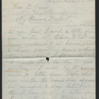 - Letter from Margaret Duncan Lyman to her husband/cousin, Reverend Horace Sumner Lyman. She discusses correspondence with her family, her mother's health, and missing her husband.