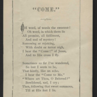 - 'Come,' printed poem sent between members of the Lyman Family