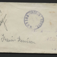 - Envelope from Mary Frances Lyman to her parents, Reverend and Mary Denison Lyman. This letter was placed in the care of Mary's uncle, Francis Denison. Francis was the brother of Mary Denison Lyman and lived from 1813 to 1892.