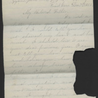 Forest Grove, Dec 7th 1882.<br/><br/>My beloved Father, <br/><br/>We rec'd a letter from you today, and I wish I could tell you how it cheered my heart, and how much I should love to see your dear precious face. I cannot tell you how much [text missing] and how are you, how [text missing] have always been of [text missing] father. I remember so [text missing] times when I have [text missing] and impatient and [text missing] not made you as [text missing] as I might have [text missing]. I wish I had always been as good to you as you have been to me. I don't suppose I shall ever have [text missing] nearer to me than [text missing] have been. Somehow, it seems as if you went away when I was dreaming. I realized so little that you were going. I am so glad that everything is so nice and pleasant for you and that all your plans are being carried out. We are getting on well at home. All is peaceful and [text missing] in our little family.<br/><br/>[text missing] you wrote about our [text missing] in regard to Willie [her brother], [text missing] write and explain [text missing] a little. I never felt [text missing] that Willie was married [text missing] he loved Mattie very [text missing]. I am and have alawys been very glad he is happ, but I have felt hurt sometimes at things that Mattie has said and done. The time that they stayed here she seemed somehow so [text missing] and unsympathetic [text missing] rather chilled and made me feel unhappy. I don't know why but somehow she never seems to feel very affectionate towards me. I certainly have tried to treat her as kindly as I knew how to do, and it is rather discouraging to have her always act so cool. Perhaps it is only [text missing] way. I had such a [text missing] when they were styaing [text missing] and taking their meals [text missing] so much of the times [text missing] acted as if she was [text missing] with us all. That has [text missing] cross, not that Willie [text missing] married but that his wife was not so congenial as I had thought she would be. I can put up with it however.<br/><br/>[text missing] has been in the main [text missing] boy, although he needs [text missing] watching, so that he may [text missing] neglect his work. I suppose all boys are so. He has been doing unusually well of late. <br/><br/>We, Sarah [her sister, who had some sort of mental illness or disability] and I, have no trouble. I always could get along well enough with her if I have her all to myself. She has been painting some little pictures for Mrs. Hoxter and Laura. She has nearly finished them. She will make about [text missing] dollars. It seems to [text missing] her up so much [text missing] something to do. Harace [text missing] to be a little lonely, but [text missing] think he is well. I was [text missing] he would be lonesome [text missing]. <br/><br/>Had you heard of Mrs. [text missing]'s death? She died some weeks ago. It seems so sad. It will change things at White Salmon a good deal. I am glad you got my [text missing] so that you did not [text missing] long about us. I do [text missing] disagree with you about the joy of having a house of ones own, but until I can marry one whom I truly love I shall continue as I am. I know you would not have me do otherwise. I could never be happy with one whom I simply married because I wanted to have a [text missing] . I trust in the Lord [text missing] wait patiently, kno[wing] [text missing] what has seemed a grief to me may yet come out all right. <br/><br/>The church seems to be getting on as usual. Dr. H. preaches all the time. The Van Dersol matter seems to have died, although Mr. V. is still living here. I went once to see Mrs. V. - I felt very sorry for her [text missing].<br/><br/>I will not bid you good night, [text missing] sheet is full. I wish I could [text missing] . Give my love to Margaret and [text missing] me as putting both my [text missing] around your nexk and giving [text missing] kiss. <br/><br/>Good by Your loving child, Mary