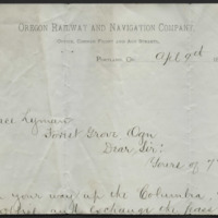 - Letter Fragment from the Oregon Railway and Navigation Company