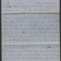 Castleton Oct 13th, 1860<br/><br/>My dear sister<br/><br/>When I received your last letter, I thought I should have written to you sooner, but the last few weeks have been crowded with unusual events, which have required all my time and strength; and as our letters do not reach you any sooner if written the first of the month than if sent within two days of the twentieth, I have waited till now tho Lucy’s has been written for some time. I will not attempt to tell you how much I have had to do, and see to, the year past, it is more than a year since the repairing and altering of our house commenced, it has been a difficult and tedious job, is not near done; and in that time we have fitted out two of our Girls and seen them married. Mary was married the 20th September. At that time we supposed they would before this time have left for South America; but the Society under whose patronage they go were undecided for some time, both as to the time of their going, and place of their location; tho they had expected to go to Chili; but they have been persuaded to go to Peru; and now expect to sail the 11th Nov. I think I wrote you in the spring, that Patience was sick. She had a complication of diseases, was not able to be around much after the first of June, and it seemed very difficult to discover what was the most diseased the mind or the body; both were distressed and she had no courage to help her up. She grew worse the last of the Summer, and her disease terminated in a kind of putrid diarhea. She died the evening of the day after Mary was married! You can have no idea of the strange commingling of the events of that week; I hope never to see another such. You know Mary was her favorite and we have thought that tho she was very much pleased with the thought of her having married to so good a man (for he is one of the best) some of her nervous distress might have been caused or at least aggravated by the trial of having her go so far from home. But I have another death to tell you about. Mrs. Morse died a month before Patience. She has been feeble for a long time, but was able to work and visit her friends, until in April she was taken with inflammatory rheumatism which settled in her knee. She suffered most intensely 4 months was never able to move herself and much of the time could not be moved; an abscess formed which discharged a great deal and finally she became dropsical and after lingering on the verge of the grave for a long time she passed away. She was very patient through her sufferings, had uncommon courage and fortitude and her death has left a great void. She was truly a kind friend, an exemplary Christian. Uncle Higley feels her loss very much his health is better than it was a year ago tho he is subject to sudden ill turns.<br/><br/>I hear seldom from sister Fanny; I believe she is not in very good health. Annie Denison is here this term attending school. She had a letter from her Mother yesterday, they are all well. Do you ever have letters from brother Francis? I seldom do; tho I hear from him thru others. He has bought a farm in Decatur a few miles from Kalamazoo. Carolines Father died a few motnhs ago. They had lived for 2 or 3 years in Kalamazoo. John Taylor was here a short time in August he seems to be a nice little Man about as small in stature as any man I know; he says George is tall and large. George is not married. You asked me if you had written to William and his wife since they wrote you- they- have not received any letter from you. I was surprised and gratified to receive that letter from Sarah, for it does not seem that you can have a child old enough to write a letter but I will write a little to her and close this very imperfect letter. I have not seen Mr. Marsh or heard anything from him lately I hoped to see him before his return to Orregon. Give my love to Brother Lyman. I would say more to him had I time. Write as often as you can and I will do the same, Your affectionate,<br/><br/>Iola<br/><br/>---<br/><br/>My dear Niece,<br/><br/>I was very glad to receive your nice letter and will write a few lines to you, tho I have not as much leisure a[s] little girls have for writing. I am glad you are such a help and comfort to your Mother, a good child is a great comfort. I think it must be very pleasant where you live. I suppose you have much nicer fruit than we do, and not as much cold weather. I should delight to see you all here, and hope we shall some time, though it is a long journey. I think you must take a great deal of comfort with your little brothers and sister; and in attending school and I hope you will write to me often. Do you have many flowers? What kinds do you like best? I will send you some Pink seeds which are very pretty. We have no children in our family as young as you are but Gridley has a little girl about your age. You would like to see yourcousins in Middlebury but I presume you would think them rather noisy; they are lively fellows. As it is time for me to go to bed I must close. Please give my love to your Brother and Sister and believe that I love you all, tho I cannot see you. <br/><br/>Your Auntie.