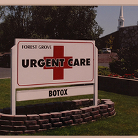Photograph of a Botox center focusing on the large sign and green lawn out front. The artist writes, 'This is one of a series of images which aim to capture some aspect of irony or idiosyncratic in everyday life. They usually tell a story - or you can made one up. While content is of prime importance I try also to make the images formally interesting.'