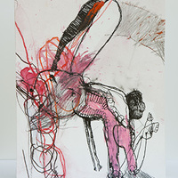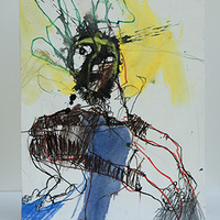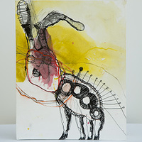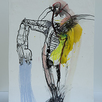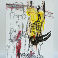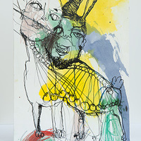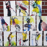 - Twelve individual wood panels painted white with drawing-like paintings on each. The twelves panels make up one harmonious work.