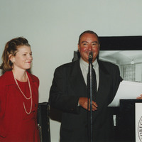 - Leslie Atiyeh stands with Tom Atiyeh as he speaks at the Oregon Historical Society. This photograph was taken during a reception in honor of an exhibit that commemorated the Atiyeh Bros. carpet business' centennial.