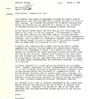 - Memo from Bob Smith and Darrell Ralls regarding the costs of workers compensation given to state employees and the benefits of self-insurance.