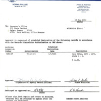 - Approval requests sent by Secretary of State, Norma Paulus, for the scheduled destruction of Atiyeh's records kept by the Oregon State Archives.