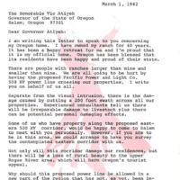 - Letters kept by Atiyeh from various constituents including Lesa Conger, actress Ginger Rodgers, Joanne Bentley, Carol Mann, Russel Morgan, Alice Schlenker, and Cyril Fung.