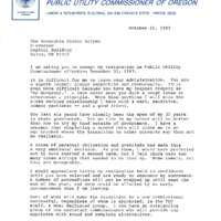 - Letter from Public Utility Commissioner of Oregon, John Lobdell, notifying Atiyeh of his resignation.