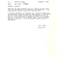 - Correspondence sent to Atiyeh from his Legal Counsel, Bob Oliver.