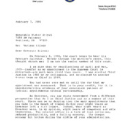 - Letter sent to Atiyeh from Oregon Supreme Court Justice, Edwin J. Peterson, thanking Atiyeh for his support and service to the State of Oregon.