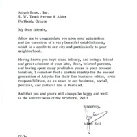 - Correspondence regarding Atiyeh Bros., Inc. Includes letter from Julius Zell and Atiyeh's resignation letter as President of the company.