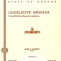 - Atiyeh's copy of Governor Mark O. Hatfield's first legislative message delivered to the 51st Biennel Legislature.