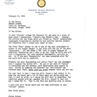 - Atiyeh's outgoing letters to the editors of Oregon Journal and Hillsboro Argus.
