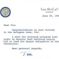 - Includes thank you letters from McCall and proclamation calling a special session of the Legislative Assembly.