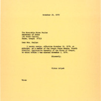 - Atiyeh's resignation letter from the Oregon State Senate. Includes correspondence from C. Gregory McMurdo with suggested draft of resignation.