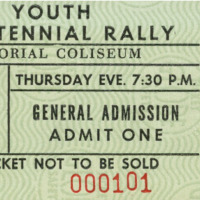 - Atiyeh's ticket stub from his attendance of the Youth Bicentennial Rally held at the Memorial Coliseum in Portland, Oregon.