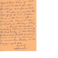 Letter from O. H. Duncan thanking Vic Atiyeh for placing the bell of the U.S.S. Sederstrom in the Governor's office. Photocopies of four photographs taken during the unveiling in 1985. First photo, left to right: Director of Veteran Affairs Jon Mangis, Governor Atiyeh; O.H. Duncan, and Representative Denny Smith. Second photo, left to right: Bill Utley, Bill England, O.H. Duncan, Billie Duncan, Dennis Duncan, Victor Atiyeh, and Loren Benjamin. Third photo, left to right: Caren Jensen, Sally Ann Sederstrom Conrad, Governor Victor Atiyeh, Aren Jensen, Kirtland Carlsen Sederstrom, Representative Denny Smith, O.H. Duncan, and Arnie Jensen. Fourth photo, left to right: Bill England, Governor Victor Atiyeh, O.H. Duncan, and Oran Robertson. The Jensens and Sederstroms were survivors of Delmore “Verdi” Sederstrom, a U.S. Navy officer who died in the Pearl Harbor attack.