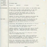 - 'In Middle East' KATU-TV transcript on Atiyeh's first impressions of Saudi Arabia
