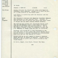 - Transcript of a KATU-TV report on Governor Victor Atiyeh's meeting with Egyptian President Hosin Mubarak during his Middle East trade mission.