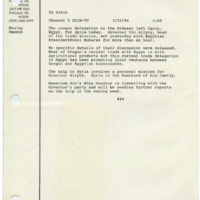 - Transcript of a KOIN-TV report on Governor Victor Atiyeh's travel from Egypt to Syria during his Middle East trade mission.