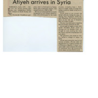 - Newspaper article from the Salem, Oregon Statesman-Journal on Governor Victor Atiyeh's arrival in Syria during his Middle East trade mission.