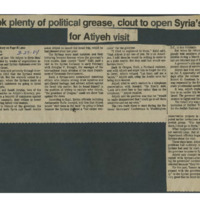 - 'It took plenty of political grease, clout to open Syria's door for Atiyeh visit' news article