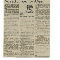 - Opinion article suspecting that the lack of a red carpet greeting for Governor Victor Atiyeh in Syria during his Middle East trade mission was no mistake.