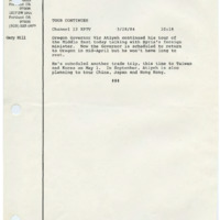 'Tour continues' KPTV transcript updating Atiyeh's Mid-east trip