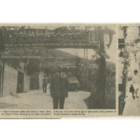 - Newspaper clipping from the Oregonian during Governor Victor Atiyeh's Middle East trade mission in Amar, Syria, the home of Atiyeh's father. In both images, the left from 1984 and the right from 1929, Atiyeh stands below a welcome sign.