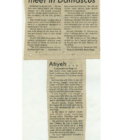 - Newspaper article from the Salem, Oregon Statesman-Journal on Governor Victor Atiyeh's meeting with Syrian President Hafez Assad during his Middle East trade mission.
