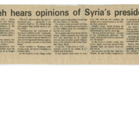 - Newspaper article from the Corvallis Gazette on Governor Victor Atiyeh's visit to Syria during his Middle East trade mission and the lack of trust in America due to its Israeli involvement.