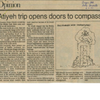 - Opinion article from the Oregon State Daily Barometer claiming that Governor Victor Atiyeh's Middle East trade mission could help to break down racial stereotypes.