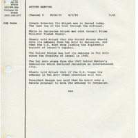 'Atiyeh meeting' KOIN-TV transcript on Atiyeh's visit with Prime Minister Shamir