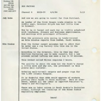 - Transcript of a KOIN-TV report discussing a rug factory and wheat production in Saudi Arabia during Governor Victor Atiyeh's Middle East trade mission.