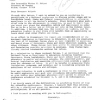 Letter inviting Governor Atiyeh to the National Forum on Excellence in Education
