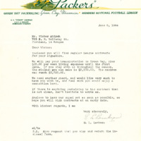 A letter and a contract from E. L. 'Curley' Lambeau, Coach and Manager of the Green Bay Packers, to Victor Atiyeh, who would later become the governor of Oregon. The letter dated June 6, 1944 offered Atiyeh, who had played on the University of Oregon varsity football team, a position as a guard. Atiyeh would turn down the offer in favor of continuing to work on his college degree.