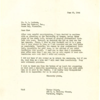 A letter from to Victor Atiyeh, who would later become the governor of Oregon, addressed to E. L. 'Curley' Lambeau, Coach and Manager of the Green Bay Packers. Atiyeh turns down the offer of a position as guard on the Green Bay Packers team in order to continuing pursuing his studies at the University of Oregon.