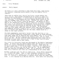 A memo prepared by Gerry Thompson reporting to Governor Atiyeh on October 23, 1981. The report covered topics including: the Willamette Valley Express; the Traffic Safety Commission; the Integrity Assurance Board; State Fair horse regulations; revised fiscal impact figures for state financing of courts; and a Chevron Fund compiled by budget analyst Robert Joerger. This is one document from a binder containing selected daily reports to the Governor, which was compiled by Gerry Thompson.