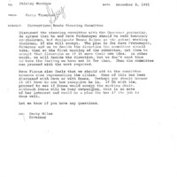 A memo on the Bonds Steering Committee prepared by Gerry Thompson reporting to Shirley Woodrow, Special Assistant for Executive Appointments, on December 8, 1981. The report is to inform committee heads about the first meeting and the direction the committee will take. Donna Zojonc, tentative working chairman and campaigner, is suggested to represent the cities for the Bonds Steering Committee. This is one document from a binder containing selected daily reports to the Governor, which was compiled by Gerry Thompson.